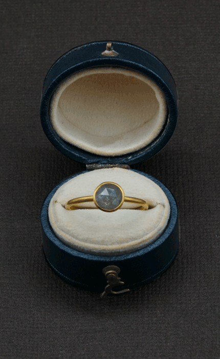 Une bague en or 18 carats composée d’un Diamant rosecut serti dans une coque en or.