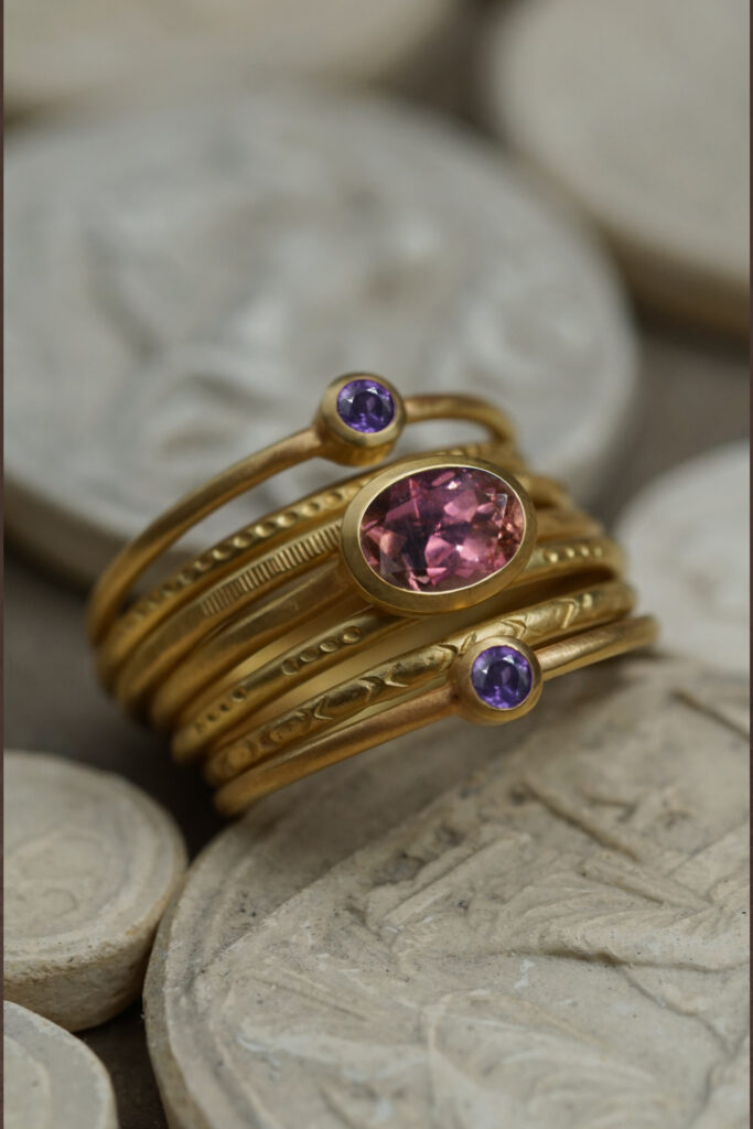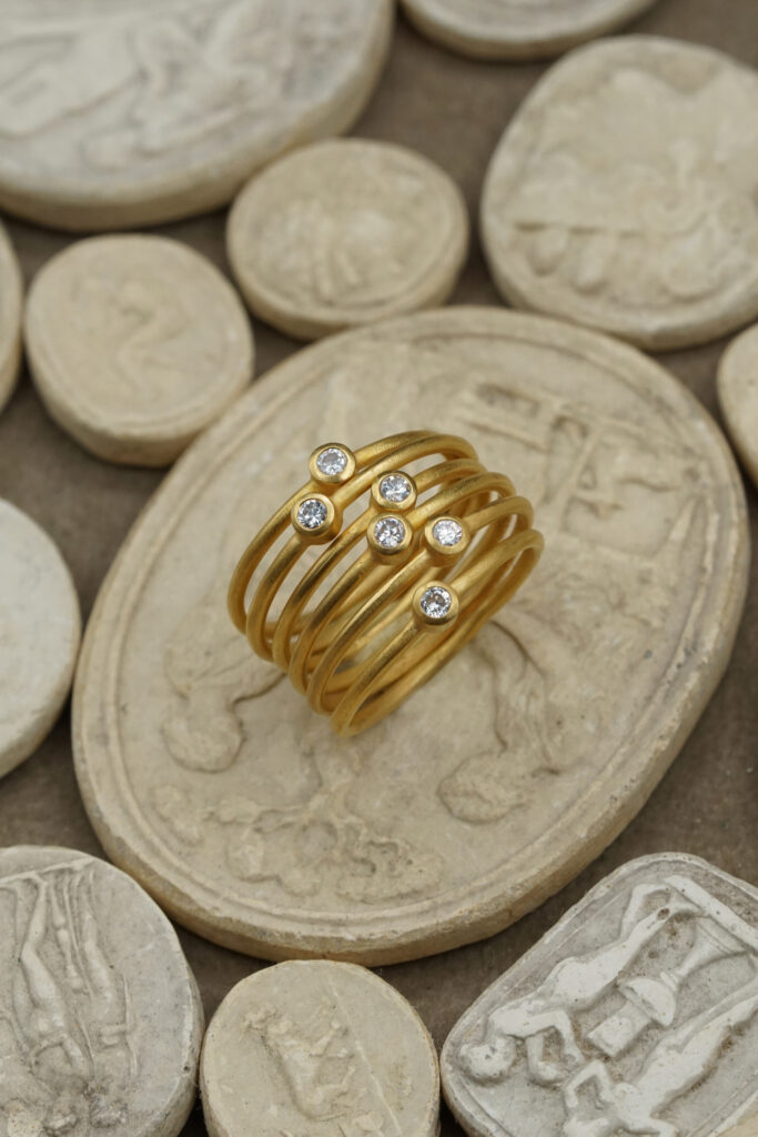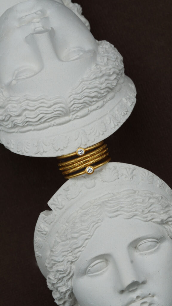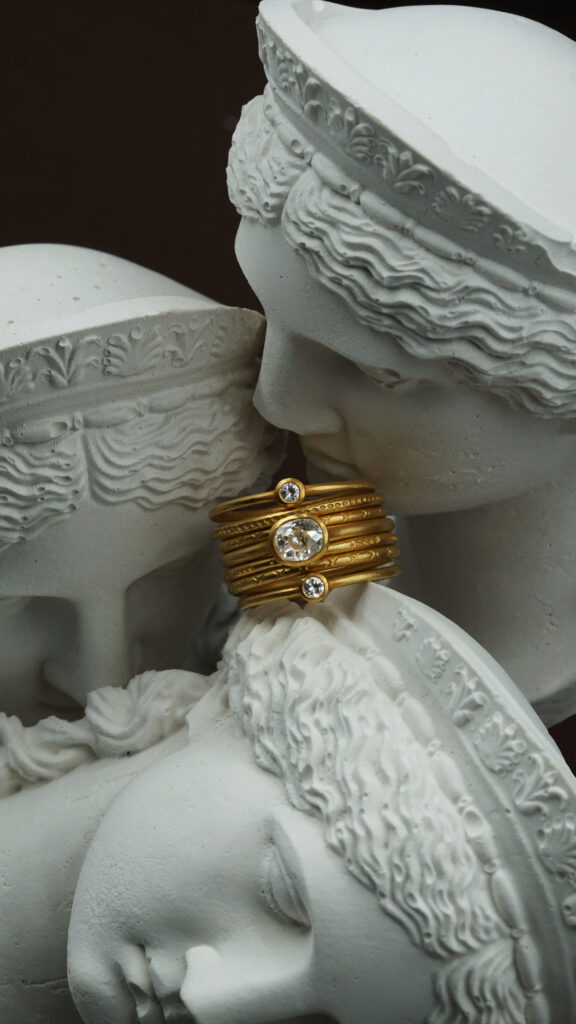 Cette bague se porte seule, en accumulation ou bien accompagnée d’anneaux ciselés, de bagues Orphée. Imaginez votre Olympe et composez votre ensemble de bagues.