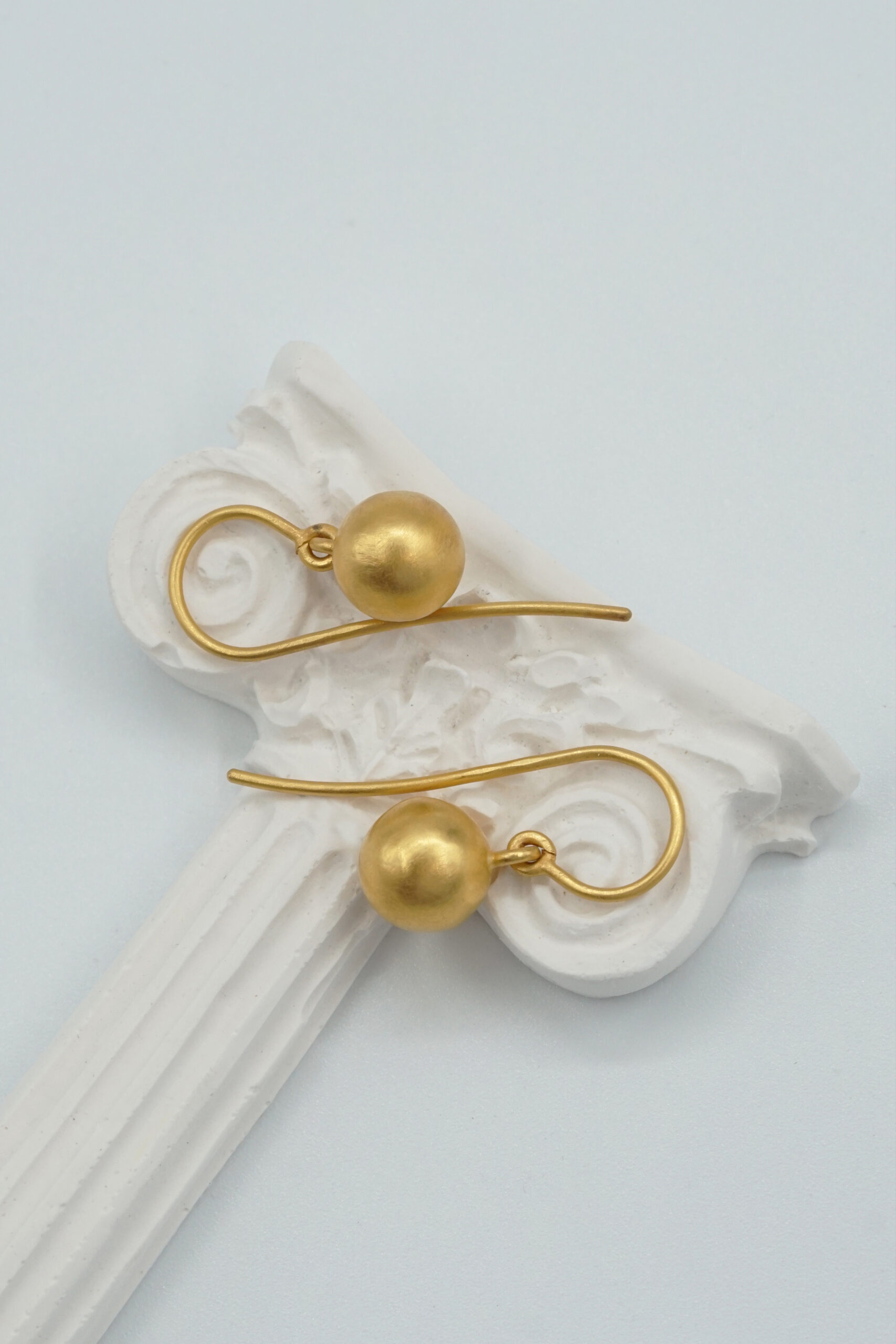 Une paire de boucles d’oreilles en or 18 carats avec deux sphères en or suspendues.