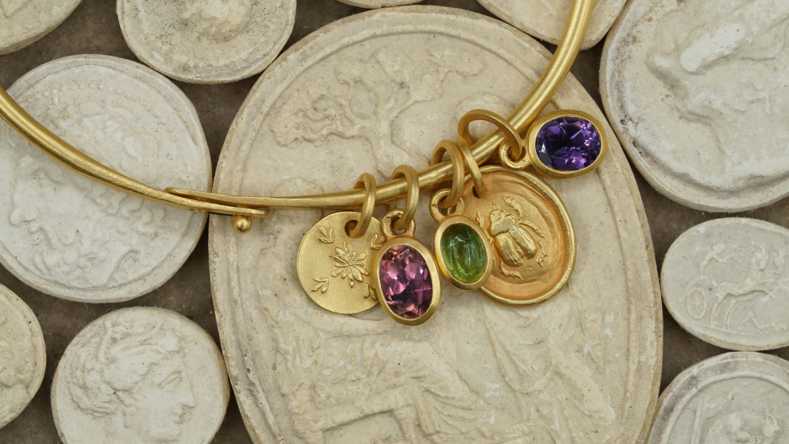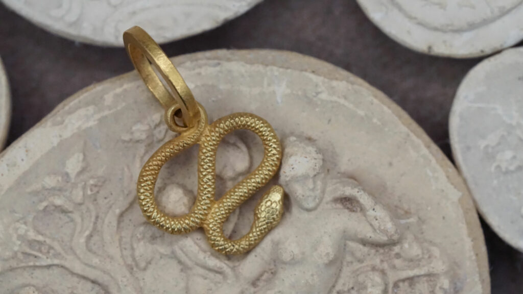 Nous travaillons l’or 18 carats l’alliage d’or le plus résistant pour la bijouterie. Chez Gratas notre or signature est un or jaune mat et chaud : il vous rappellera les bijoux antiques présents dans les livres d’Histoire et les musées.