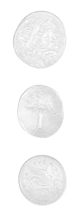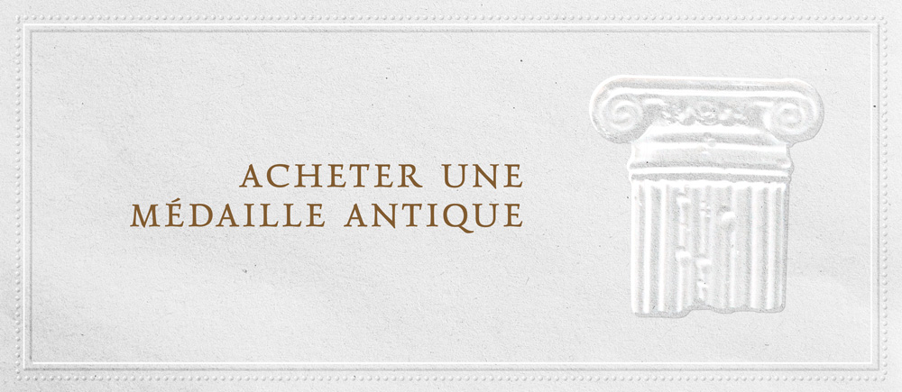 Nous proposons cinq médailles antiques différentes : un pégase, un arbre, une tête romaine, un oiseau, un scarabée. Elles ont toutes des tailles différentes.