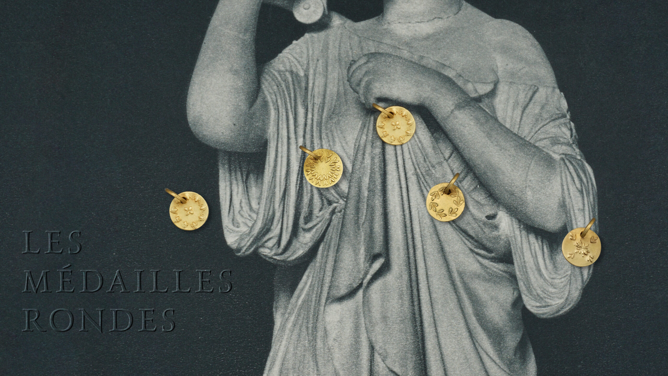 Cette médaille se porte seule ou bien accompagnée de pendentifs avec des pierres facettées ou taille cabochon.