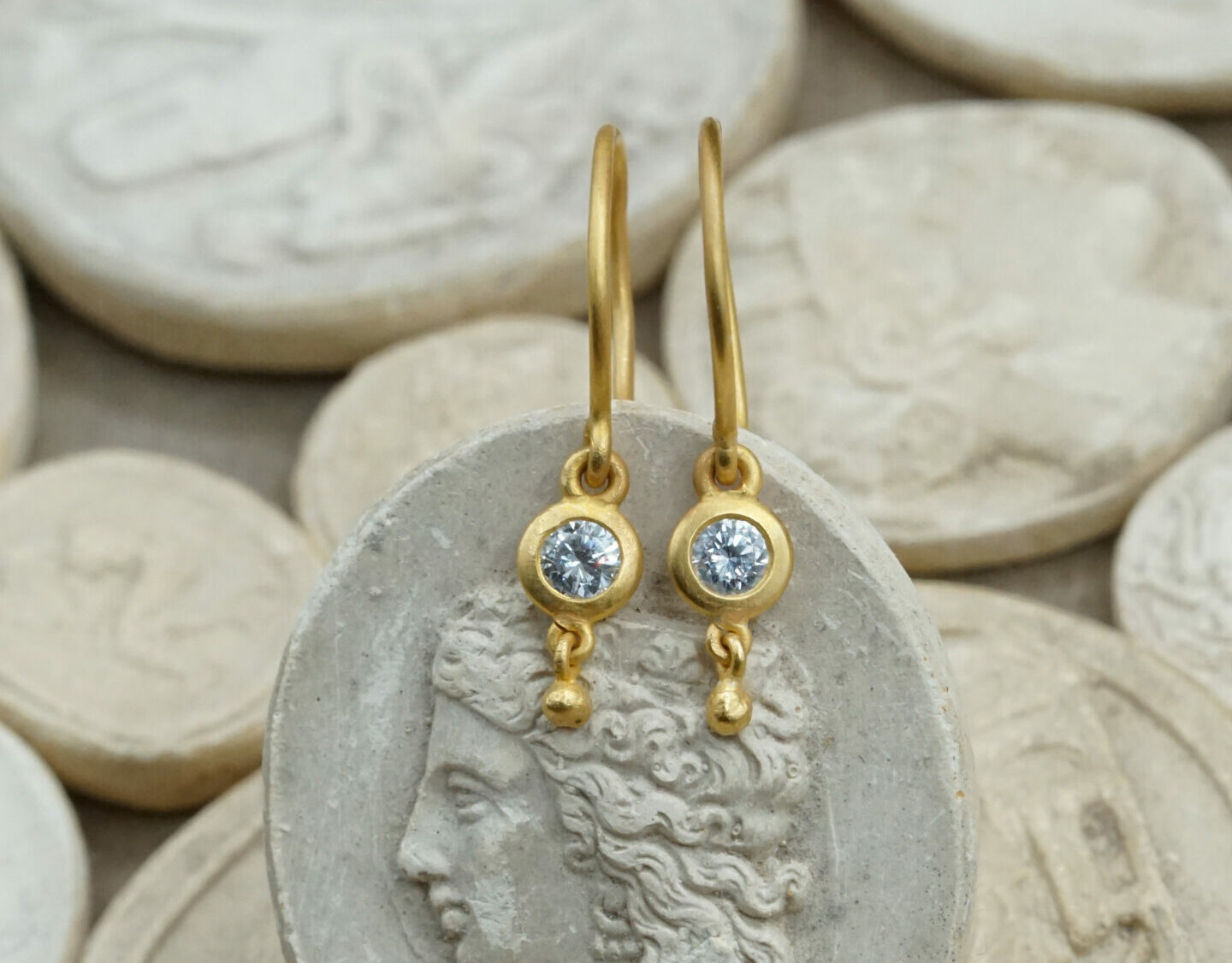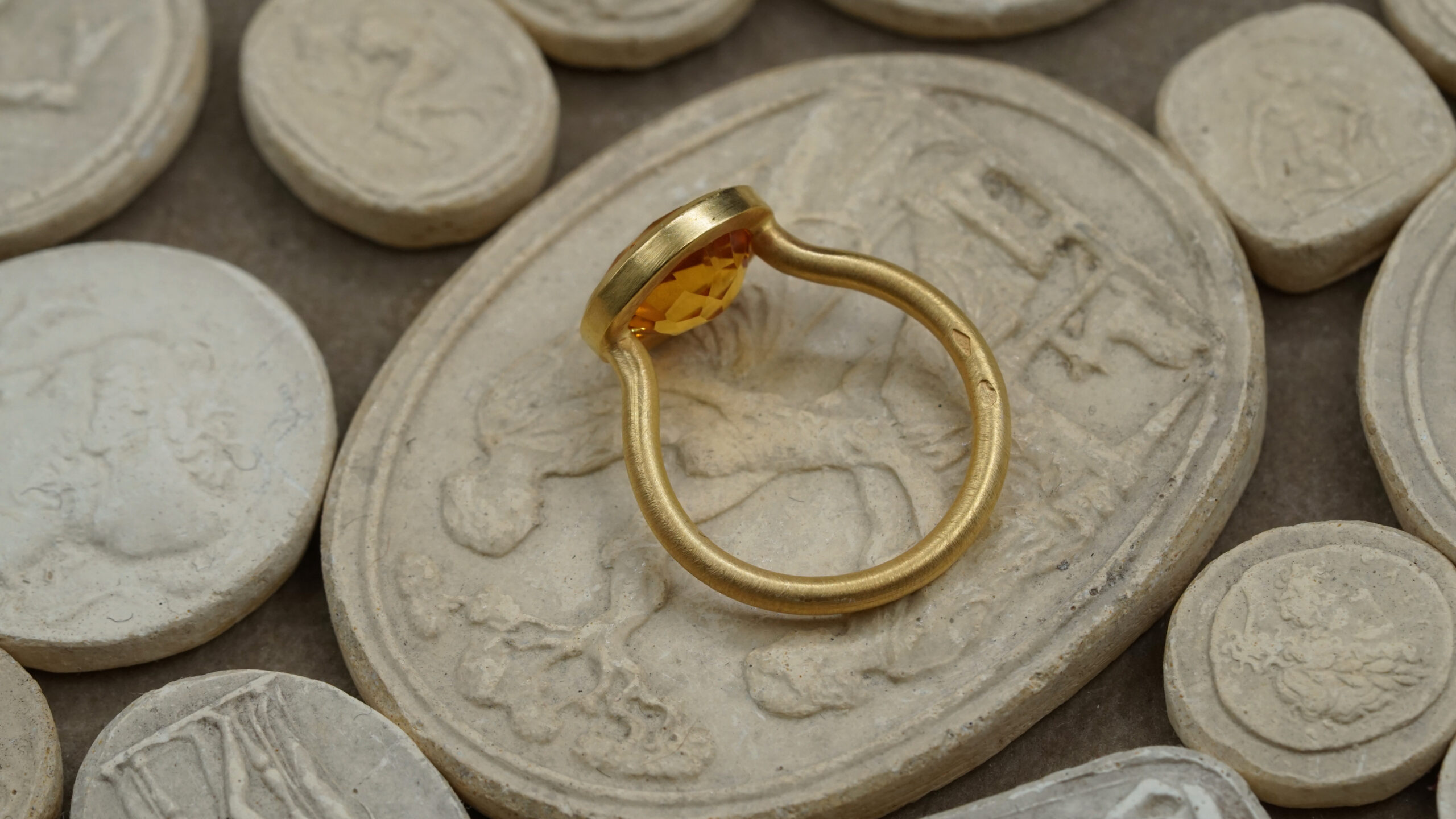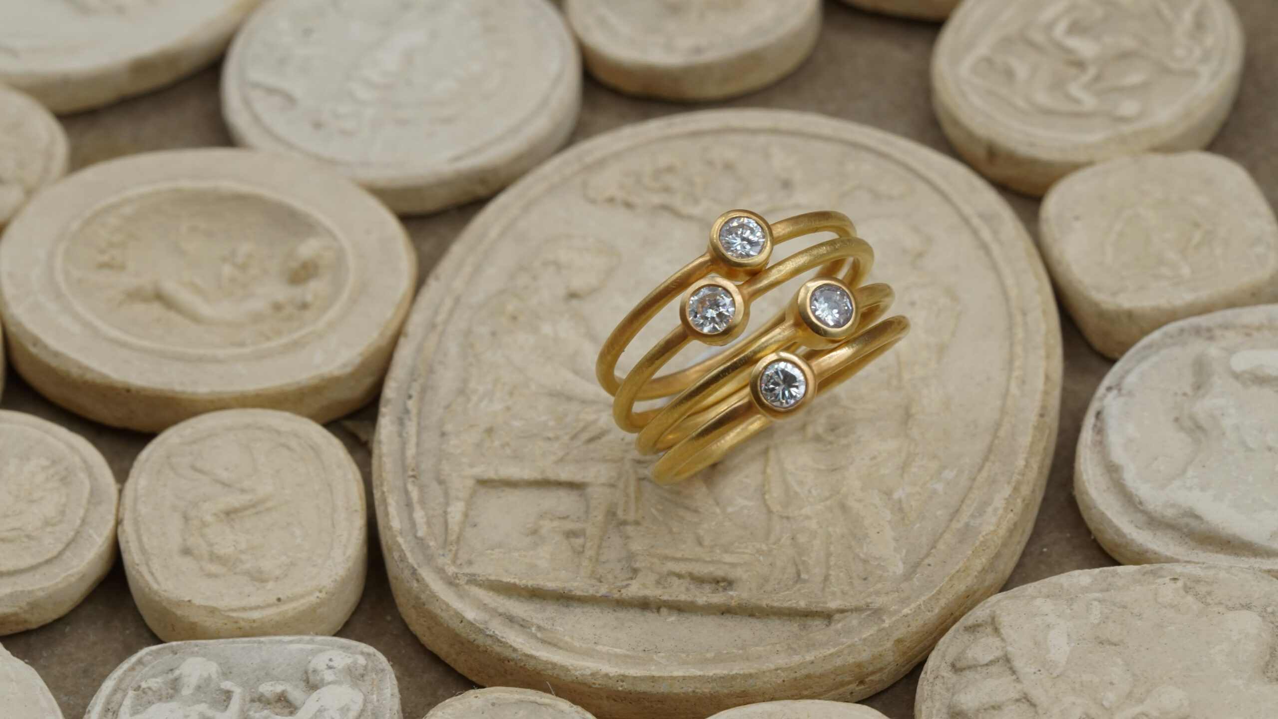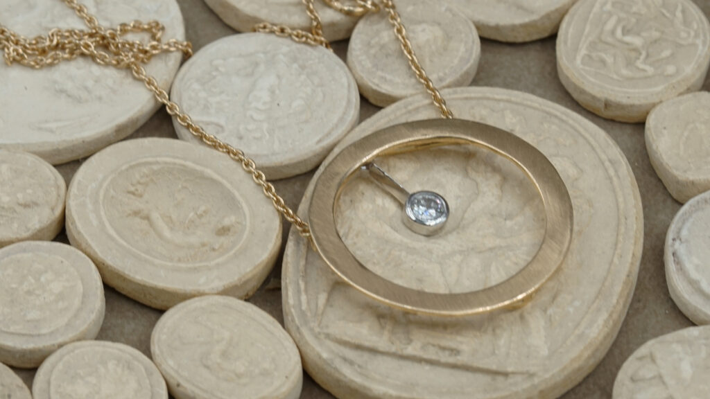 À partir de plaques et de fils, les bijoux prennent peu à peu forme. Depuis la boutique il est possible de voir une flamme de chalumeau, d’entendre les coups de limes et de marteau. Le geste artisanal perdure dans cette boutique. Elles travaillent directement le métal ou sculptent des cires qui sont ensuite fondues grâce à la technique de la fonte à cire perdue.